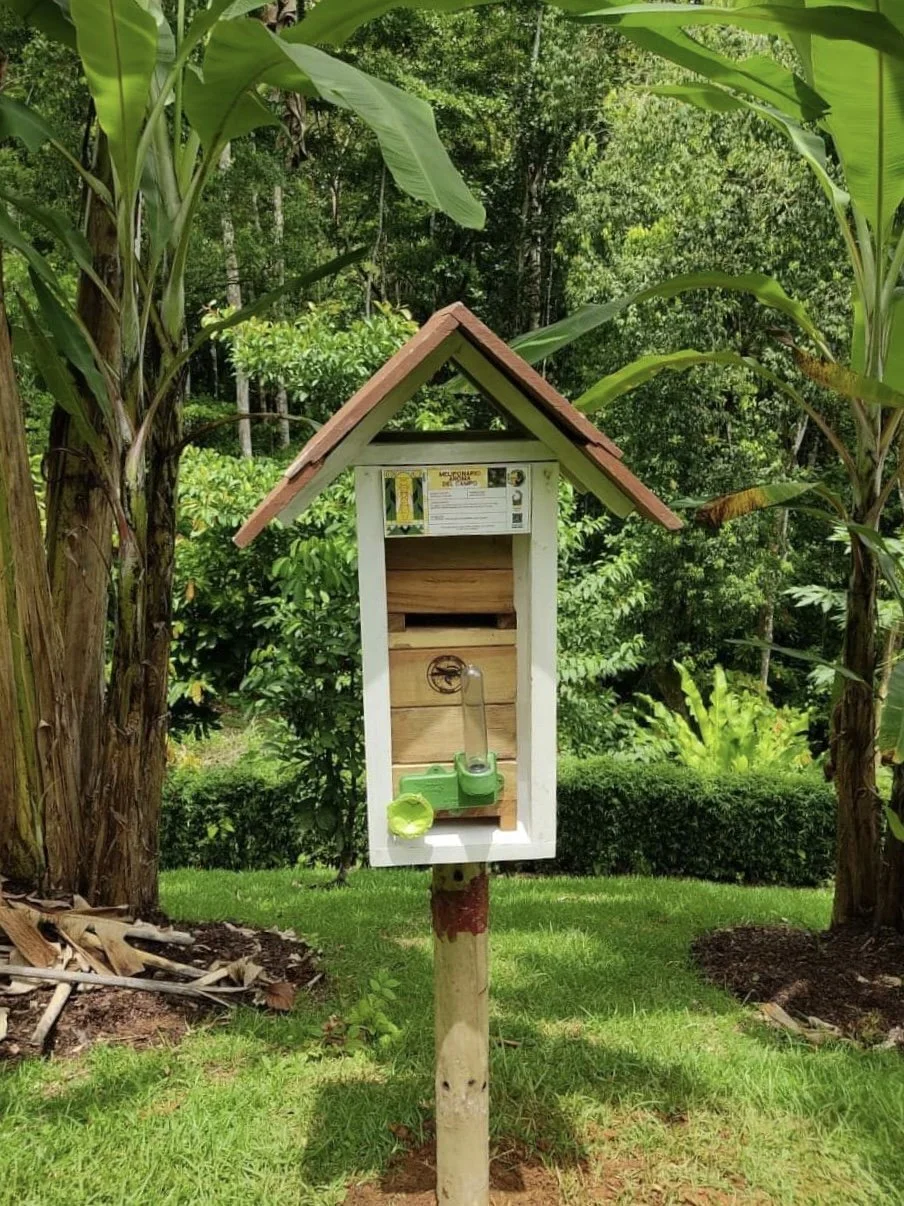 Meliponiculture. A big word for keeping world’s tiniest - and stingless! - honey bees. At Sparkroot Wild we promote this ancient practice because the bees (locally known as Mariolas / Tetragonisca angustula) play a vital role as pollinators of rainforest fruits and our conservation gardens which, in turn, expand and improve avian habitat.