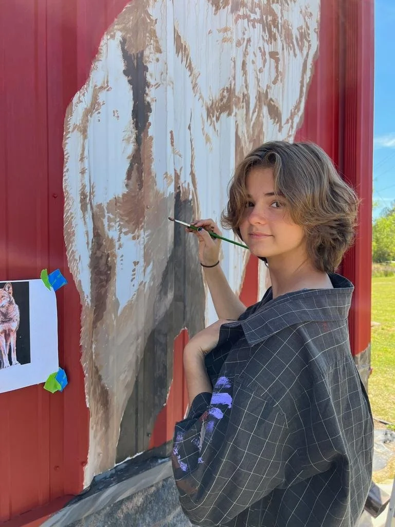 Eden River grew up one of three siblings with parents deeply involved in wildlife conservation and endangered species management. She was raised on permaculture gardens, art, music and books. She is a skilled artist and designer, making digital art, drawing and painting. Recently she joined the mural team @thegoodofthive, contributing to two large-scale murals featuring both red wolves and threatened and endemic Costa Rican birds. An imaginative writer, avid reader and incredible painter, she enjoys horseback riding and currently works designing and painting murals at the Reserva schools.