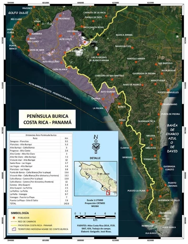 One of the most difficult of the Ngabe territories to access, it is far from populated areas, and road conditions are often difficult (but improving). Located in the extreme south of the country – a large portion of the Territory hugs the Pacific shore on the narrow Burica peninsula adjacent to Panama, where access to services and hospitals is complicated and often challenging. Conte Burica, is the only territory which includes a part of the maritime-terrestrial zone and shares a border zone with another country.